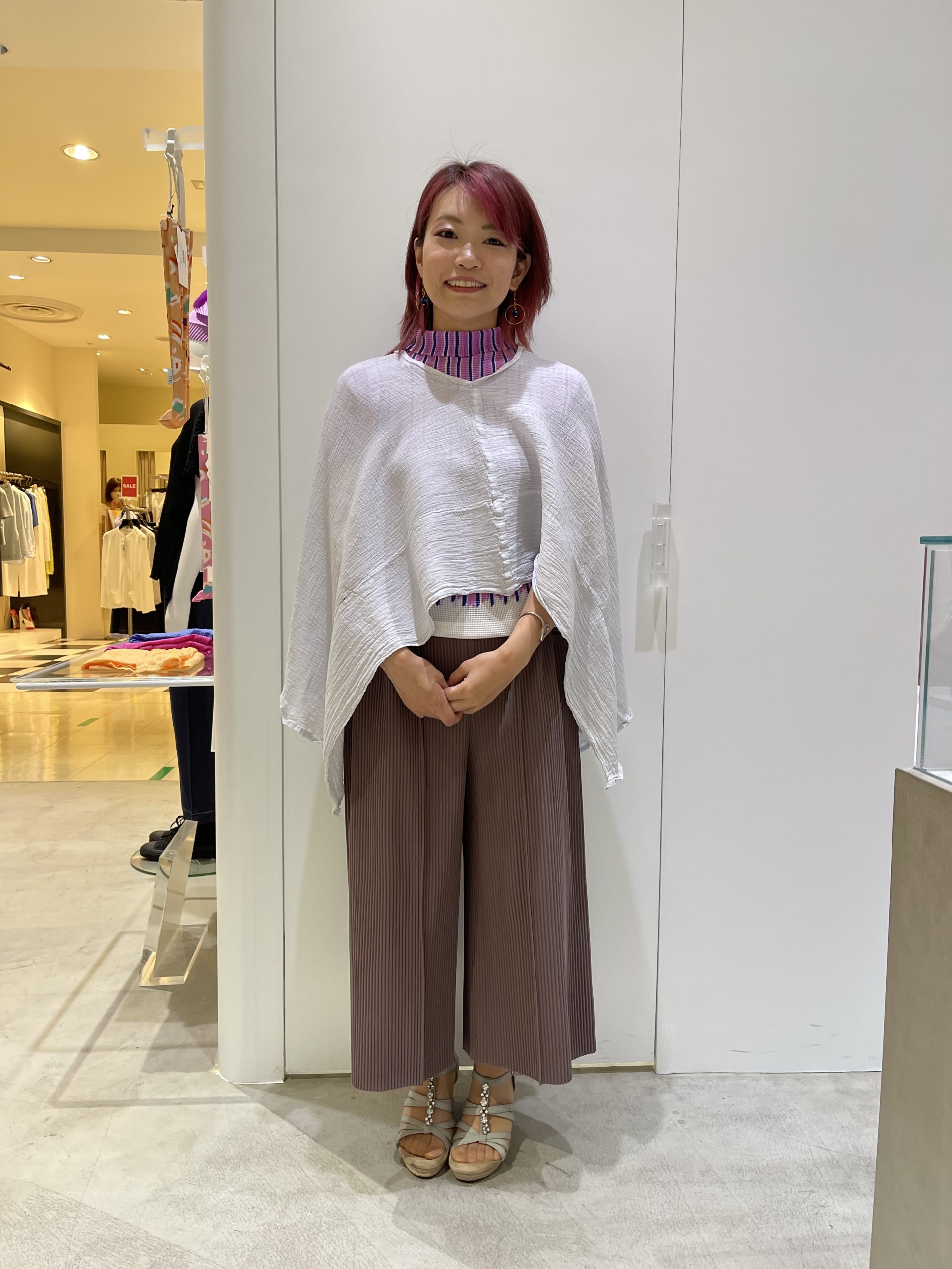 また、下記の画像(左画像)は同色素材を使ってあわせることで洗練さを強調させています。ポンチョを使ったスタイリングでアーティスト感やクリエイターらしさを演出しました。仕事でも着こなしの迷ったときに便利なアイテムです。着まわしとしてもワードローブが充実するご提案をさせていただきました。